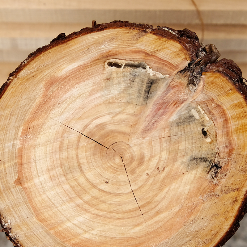 しかし枝虫材は食害を受けていることから一般的に木材市場では流通しないため、皆さんが目にする機会はあまりありません。