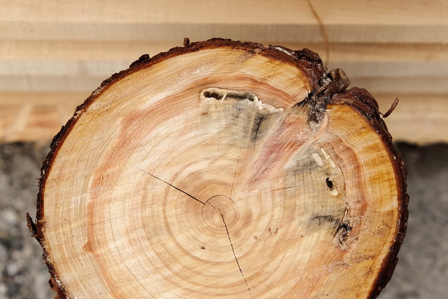 カミキリムシの幼虫が木部を食べた痕がついてしまった木材ですが、けして利用価値のない木材ではありません。利用方法を工夫することでもっと活用することができる有効な木材資源です。